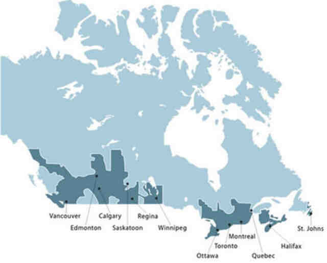 Harita uygulamasında Toronto ve Ottawa yanlış yerlerde imlenirken, Edmonton kenti Calgary’nin batısında gösterildi.